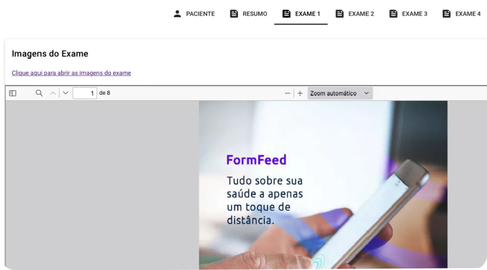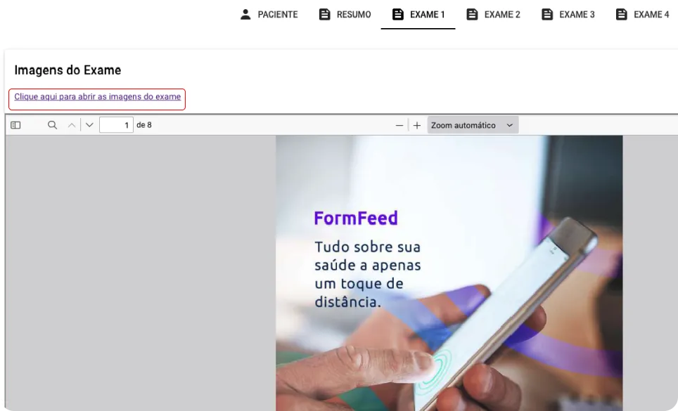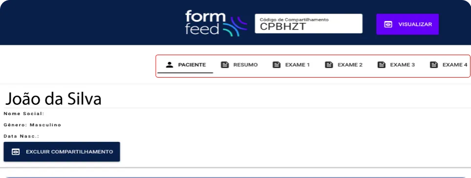 3. Em seguida, você terá acesso temporário ao conteúdo do paciente organizado em abas.