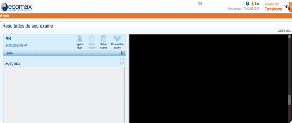 6. O link de acesso às imagens do exame aparecerá no canto superior esquerdo da tela.