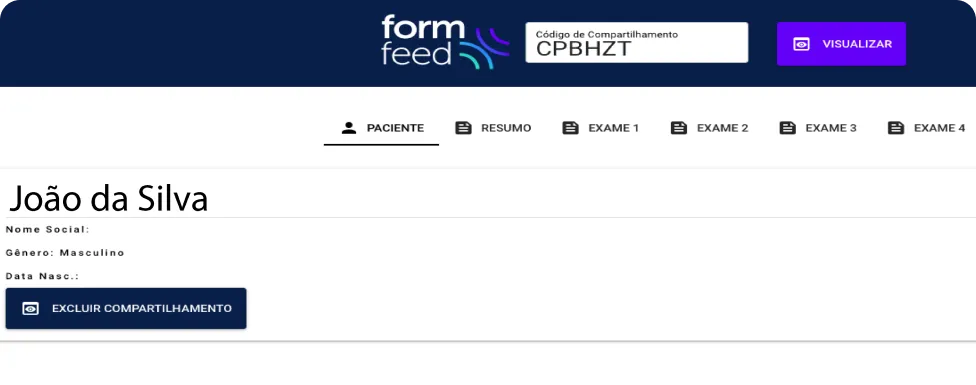 2. Você acessa o Portal Médico em formfeed.live e insere este código de compartilhamento.